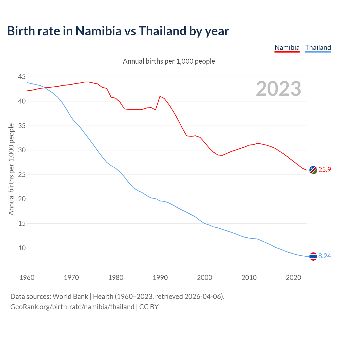 GeoRank.org/birth-rate/namibia/thailand | CC BY