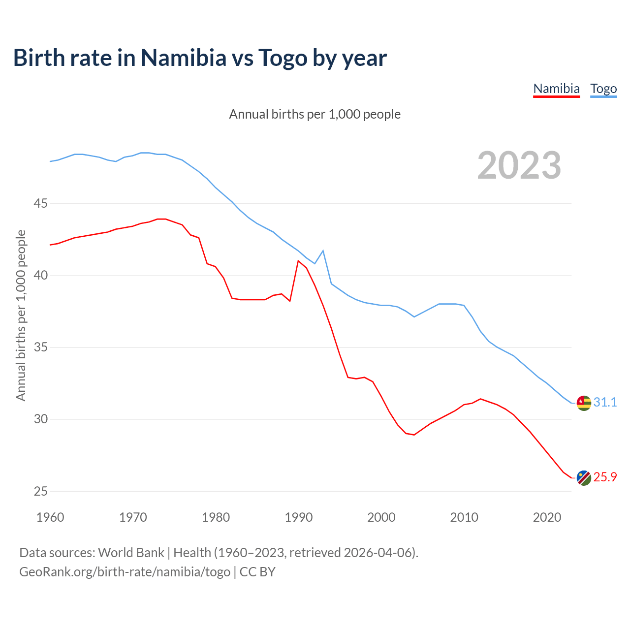 GeoRank.org/birth-rate/namibia/togo | CC BY