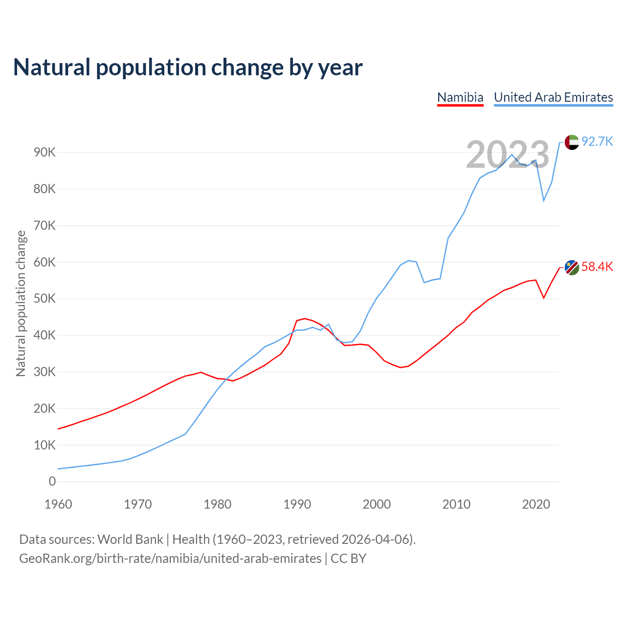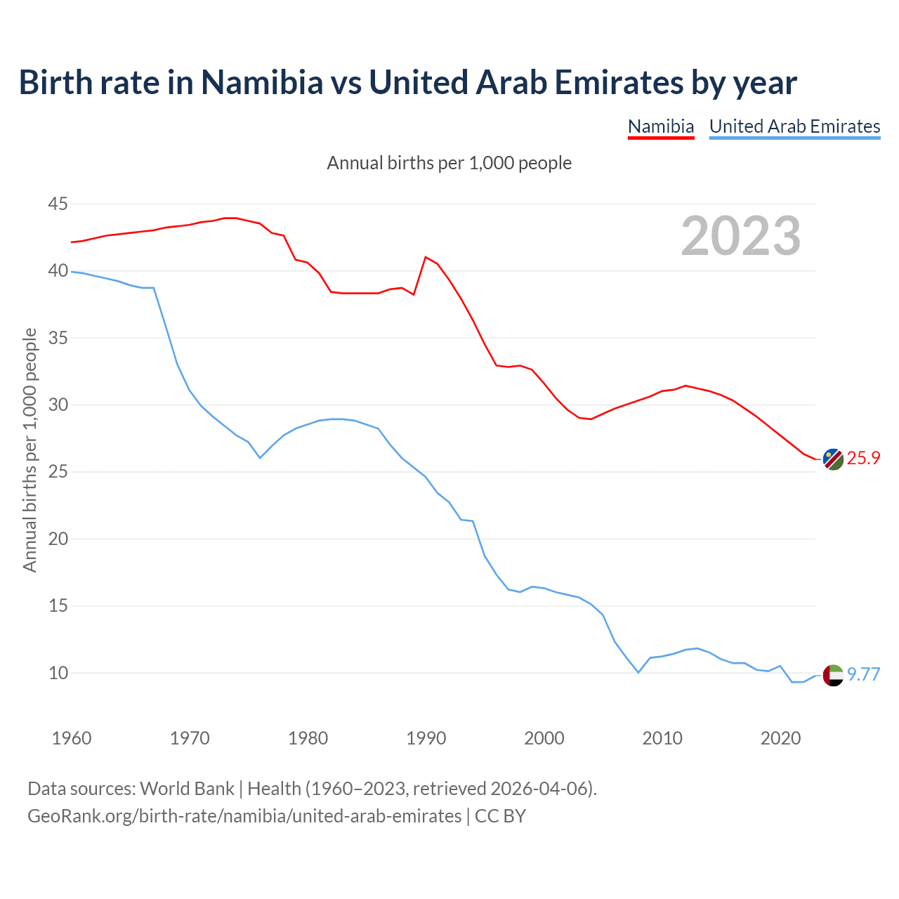 GeoRank.org/birth-rate/namibia/united-arab-emirates | CC BY