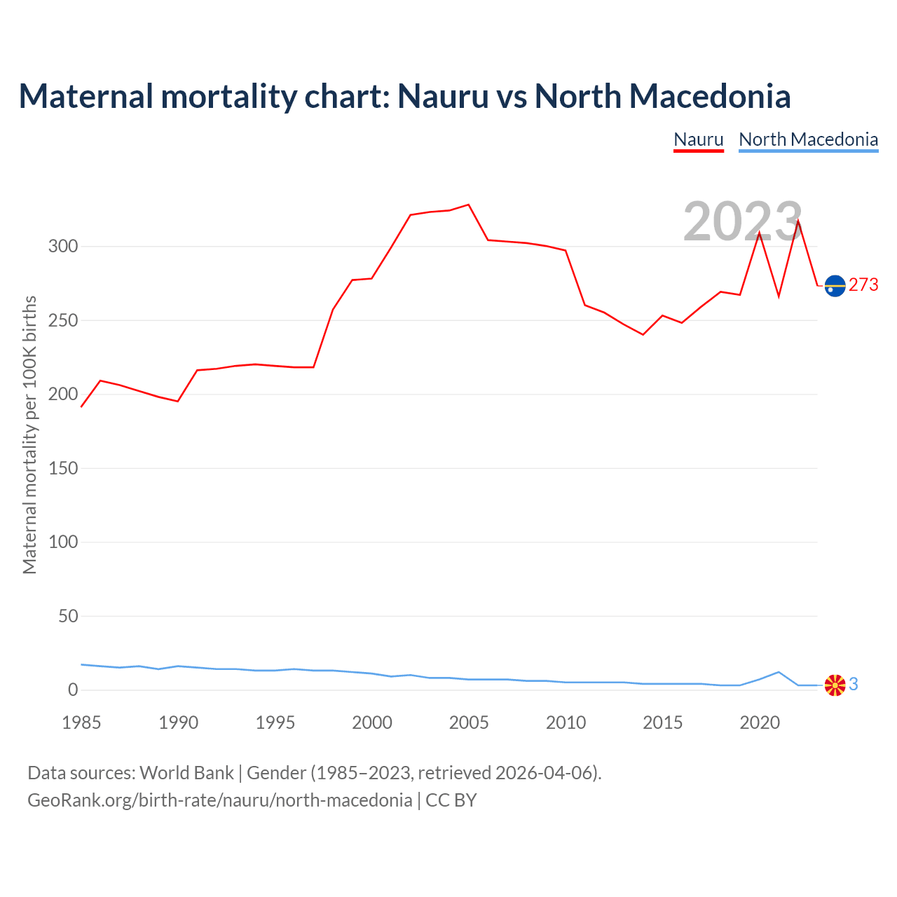 Maternal mortality chart: Nauru vs North Macedonia