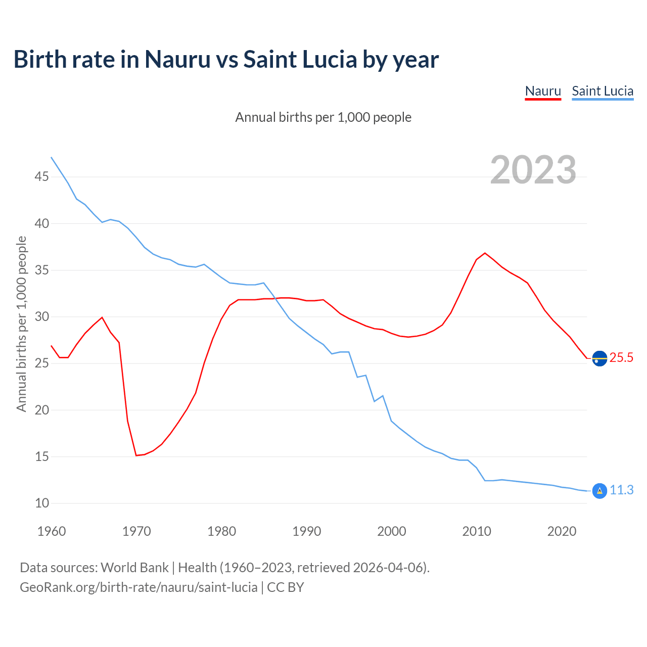 GeoRank.org/birth-rate/nauru/saint-lucia | CC BY