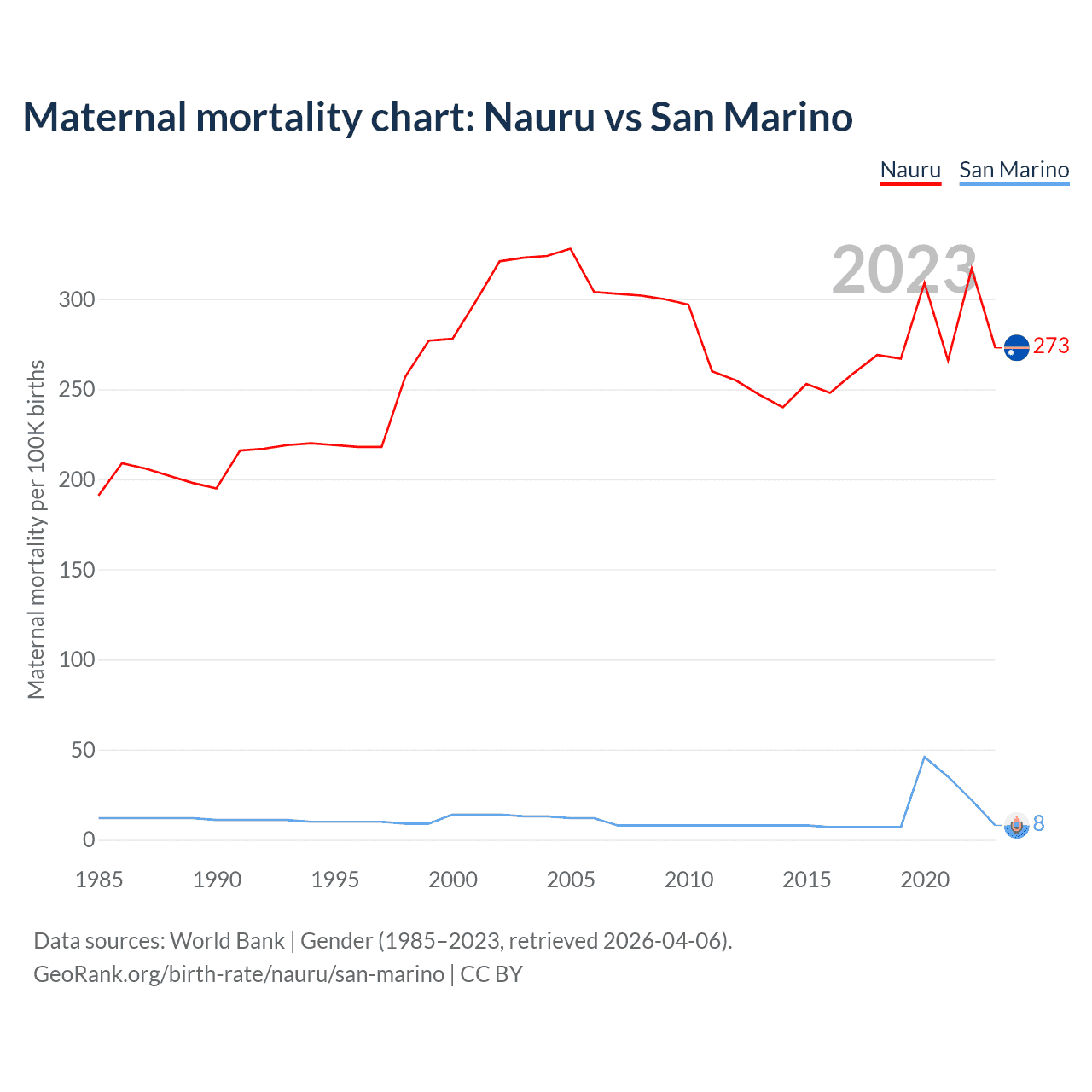 Maternal mortality chart: Nauru vs San Marino