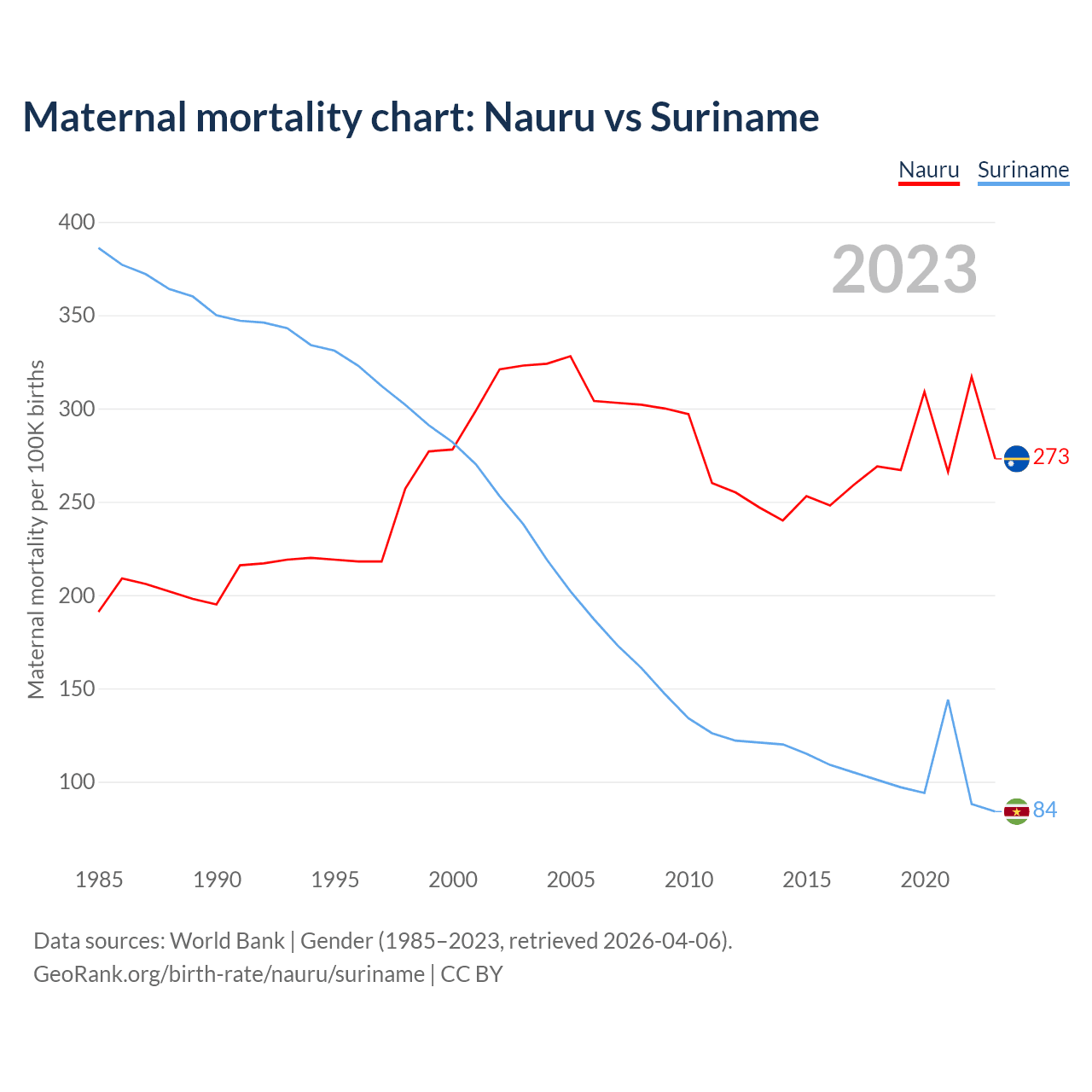 Maternal mortality chart: Nauru vs Suriname