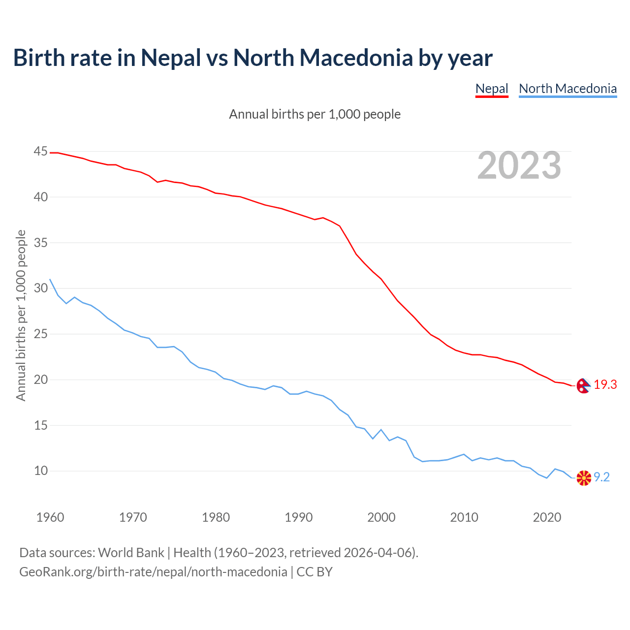 GeoRank.org/birth-rate/nepal/north-macedonia | CC BY