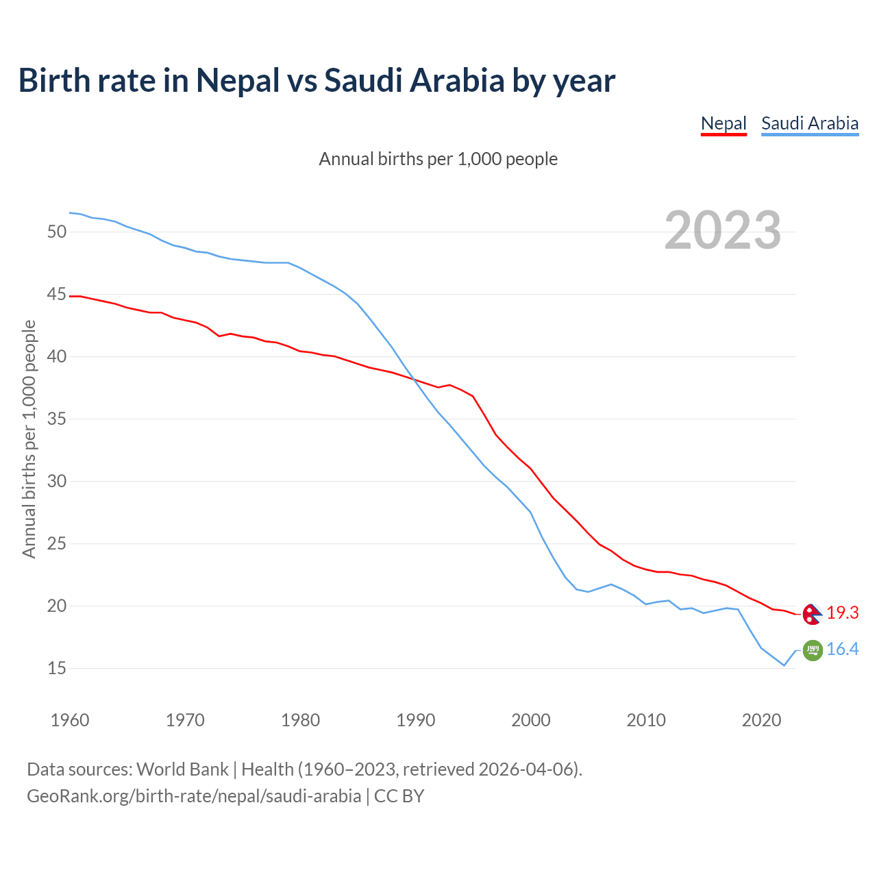 GeoRank.org/birth-rate/nepal/saudi-arabia | CC BY