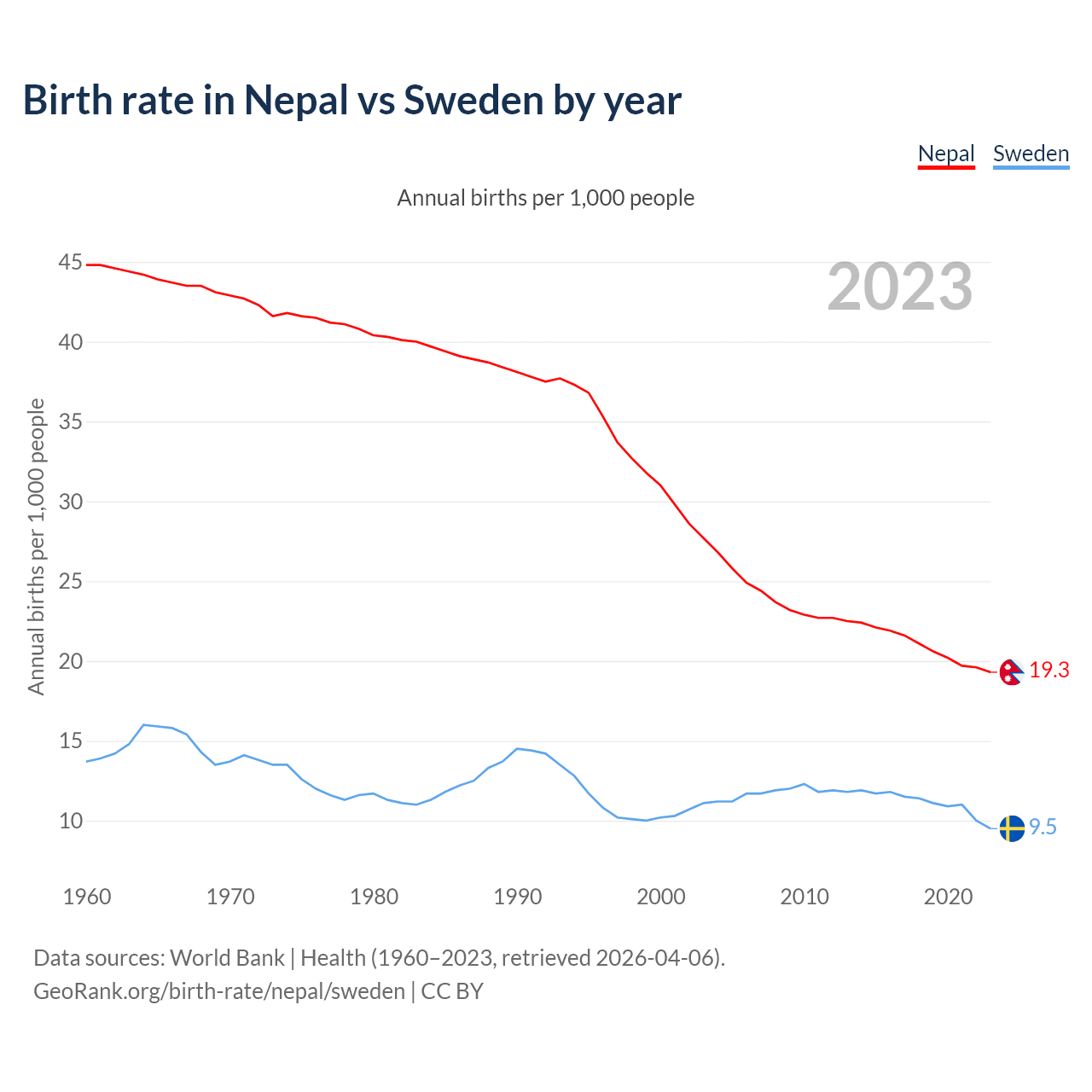 GeoRank.org/birth-rate/nepal/sweden | CC BY
