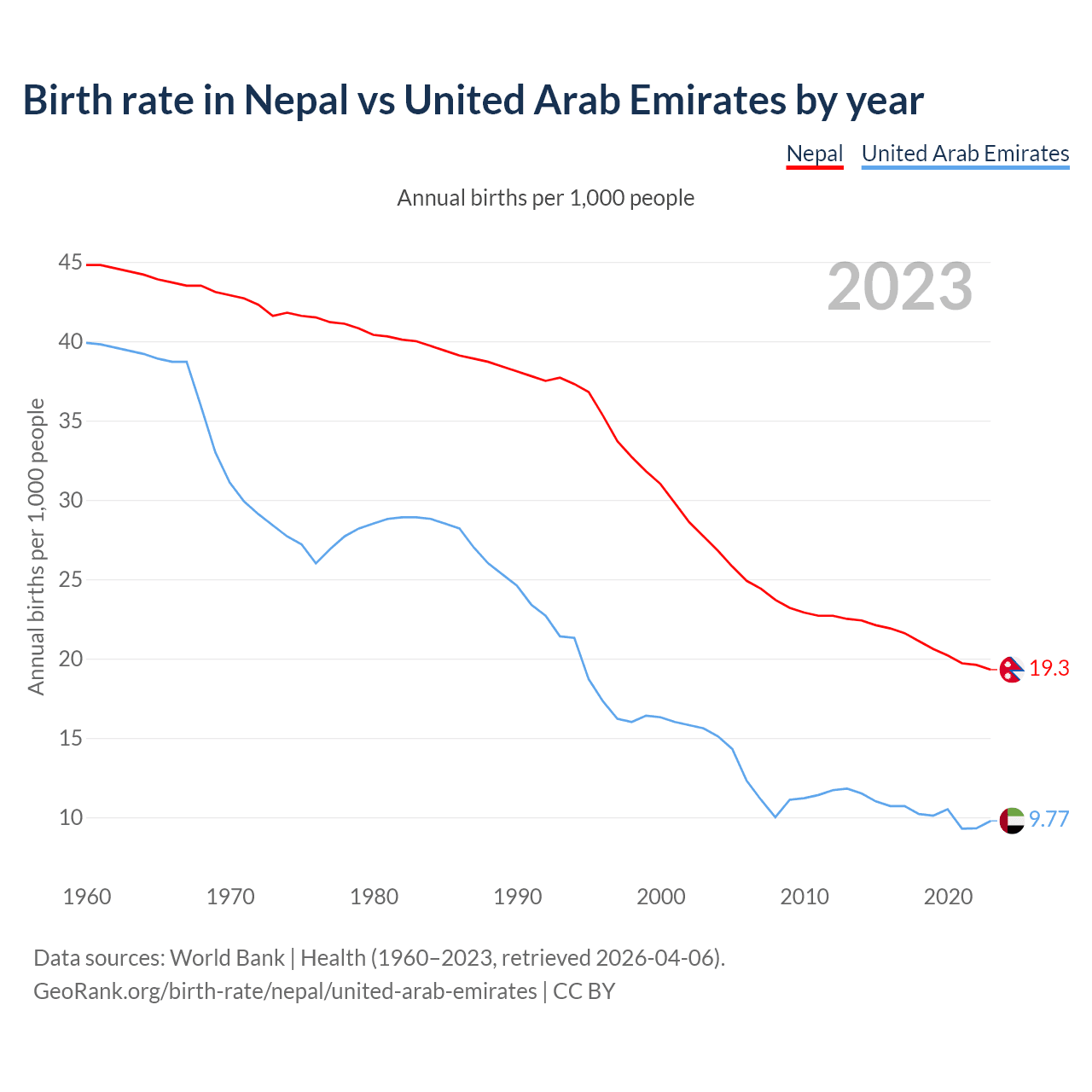 GeoRank.org/birth-rate/nepal/united-arab-emirates | CC BY