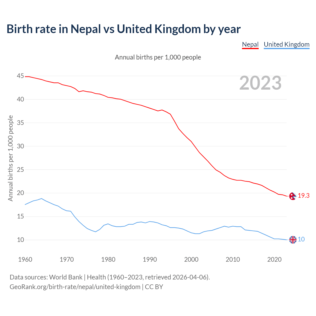 GeoRank.org/birth-rate/nepal/united-kingdom | CC BY