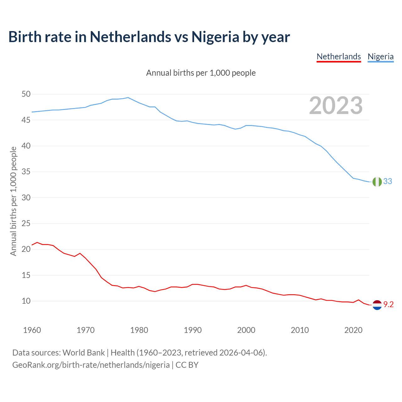 GeoRank.org/birth-rate/netherlands/nigeria | CC BY