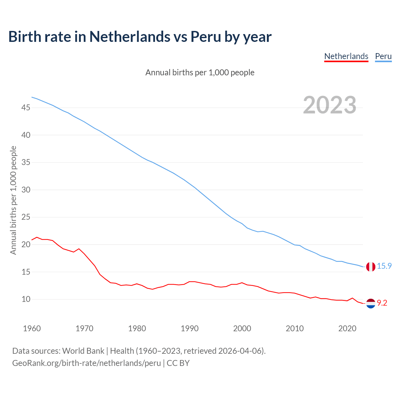 GeoRank.org/birth-rate/netherlands/peru | CC BY