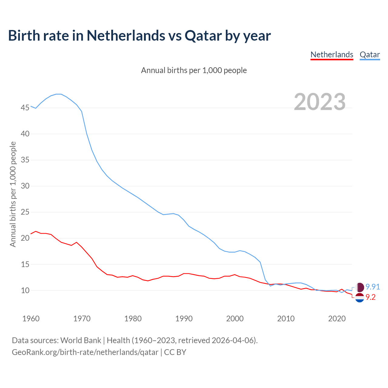 GeoRank.org/birth-rate/netherlands/qatar | CC BY