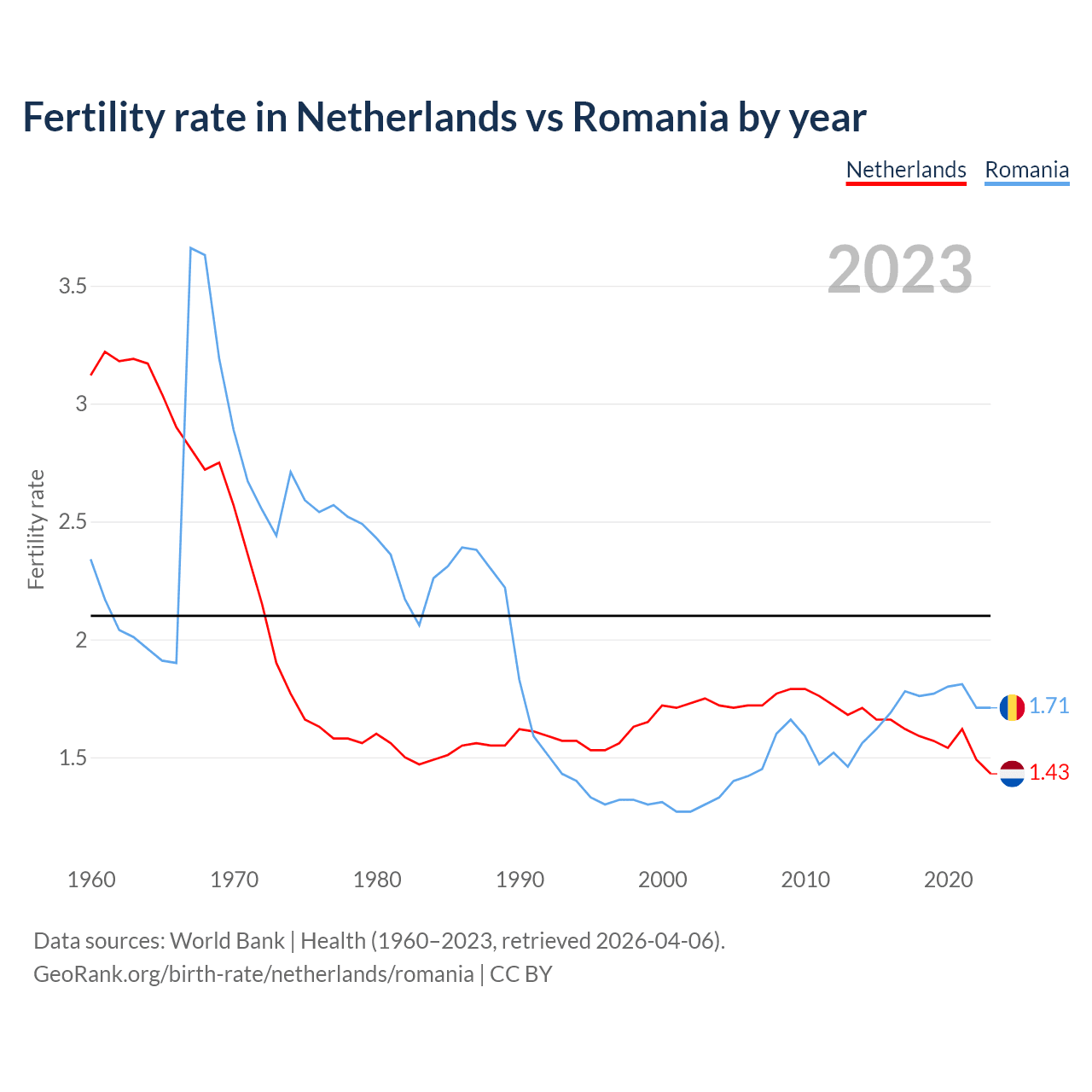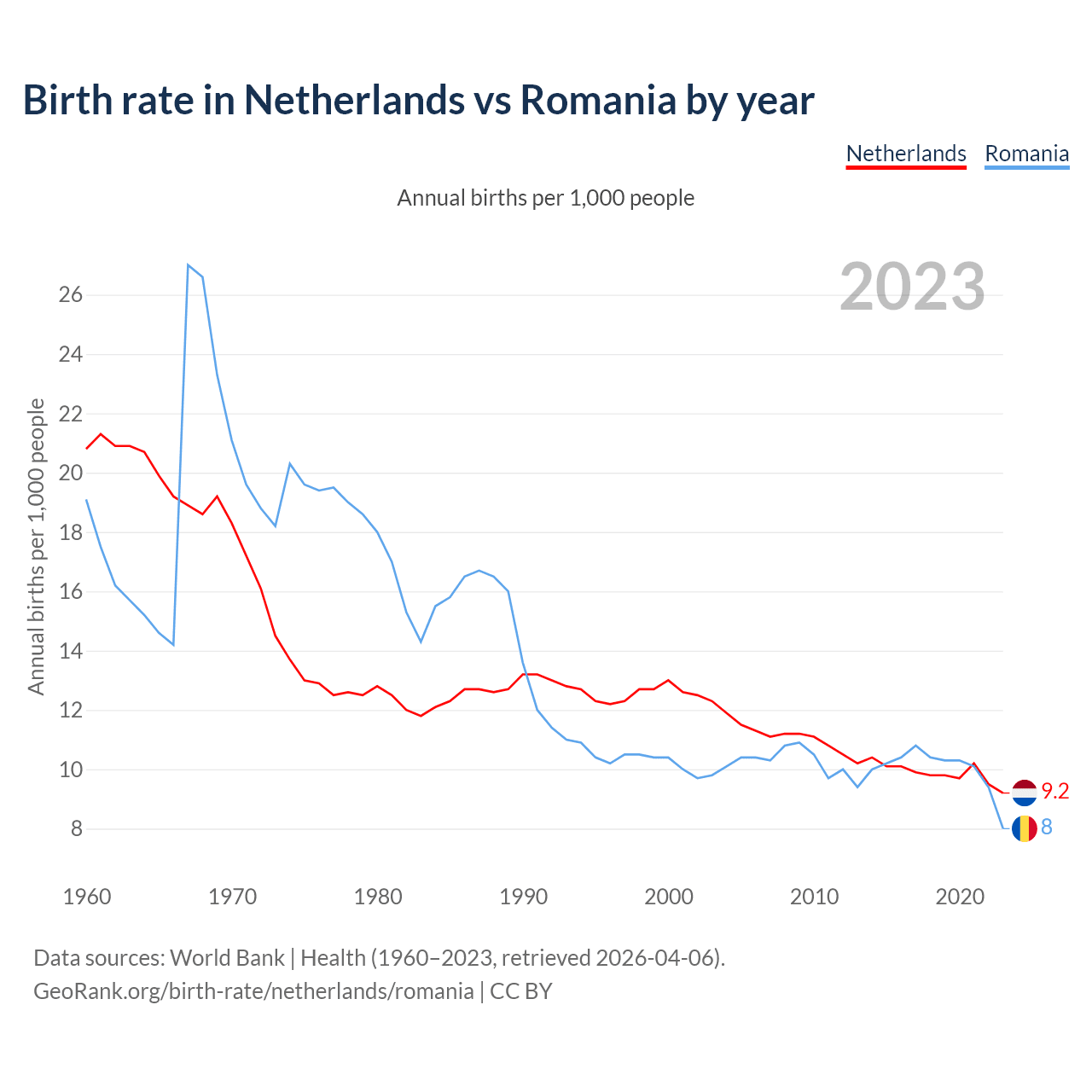 GeoRank.org/birth-rate/netherlands/romania | CC BY
