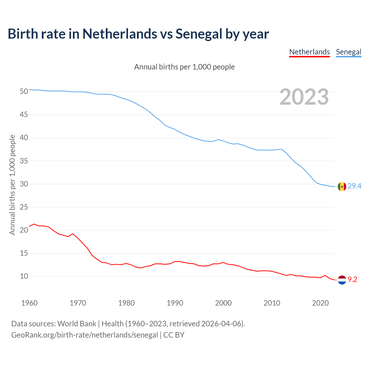 GeoRank.org/birth-rate/netherlands/senegal | CC BY