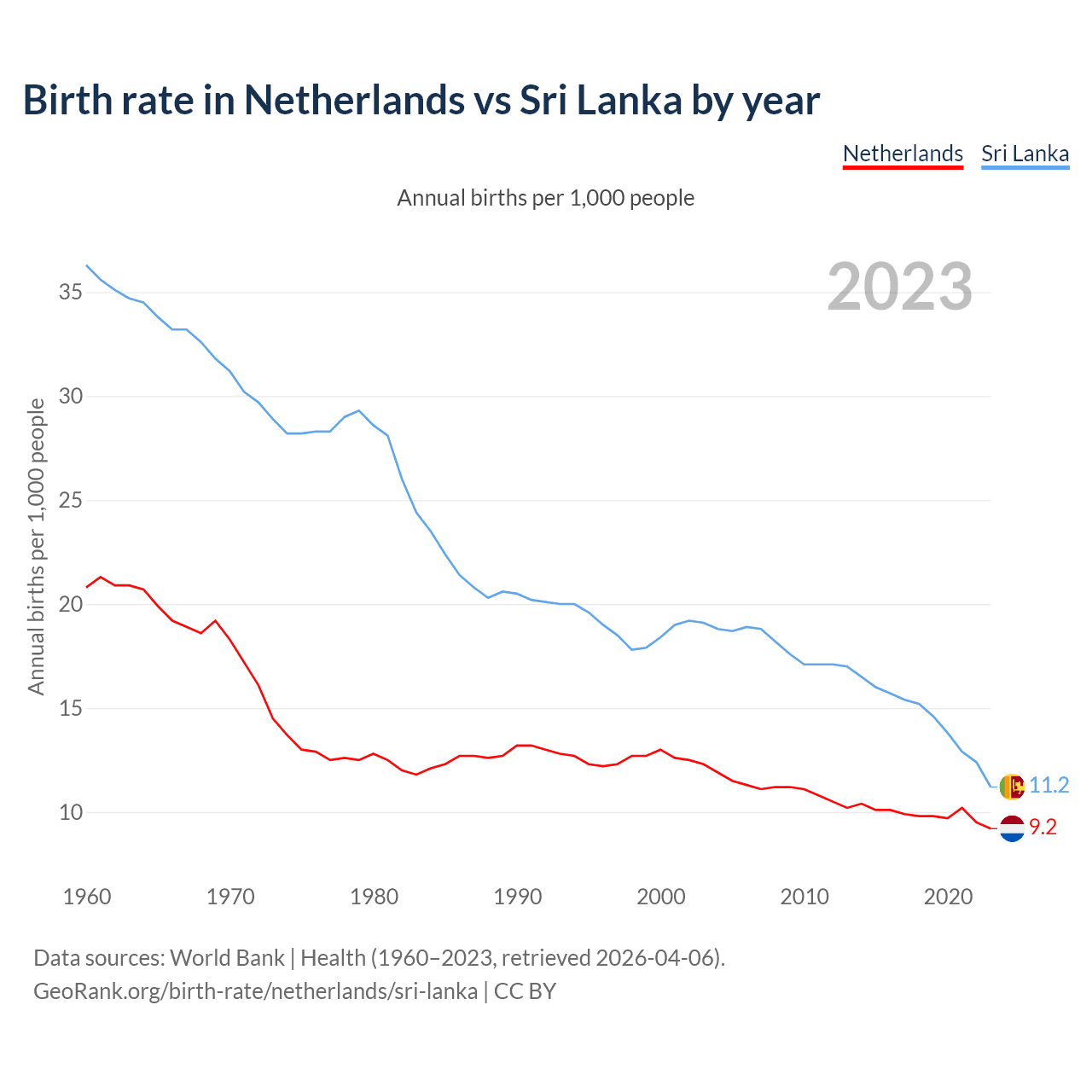 GeoRank.org/birth-rate/netherlands/sri-lanka | CC BY