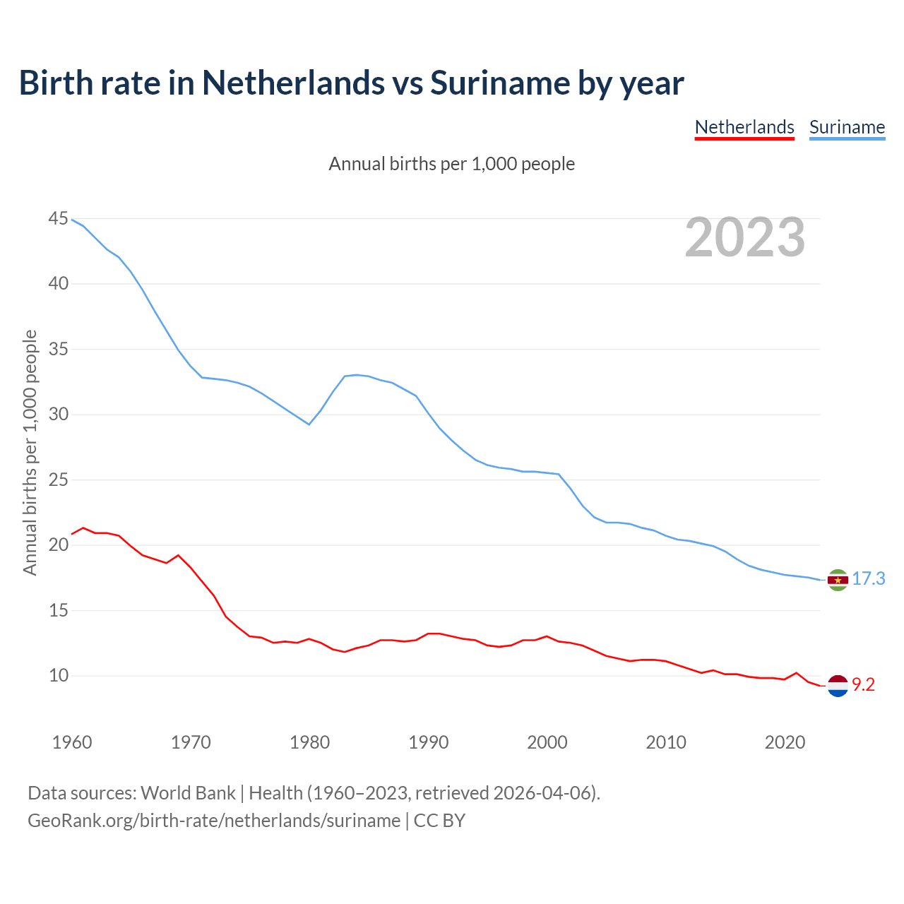 GeoRank.org/birth-rate/netherlands/suriname | CC BY