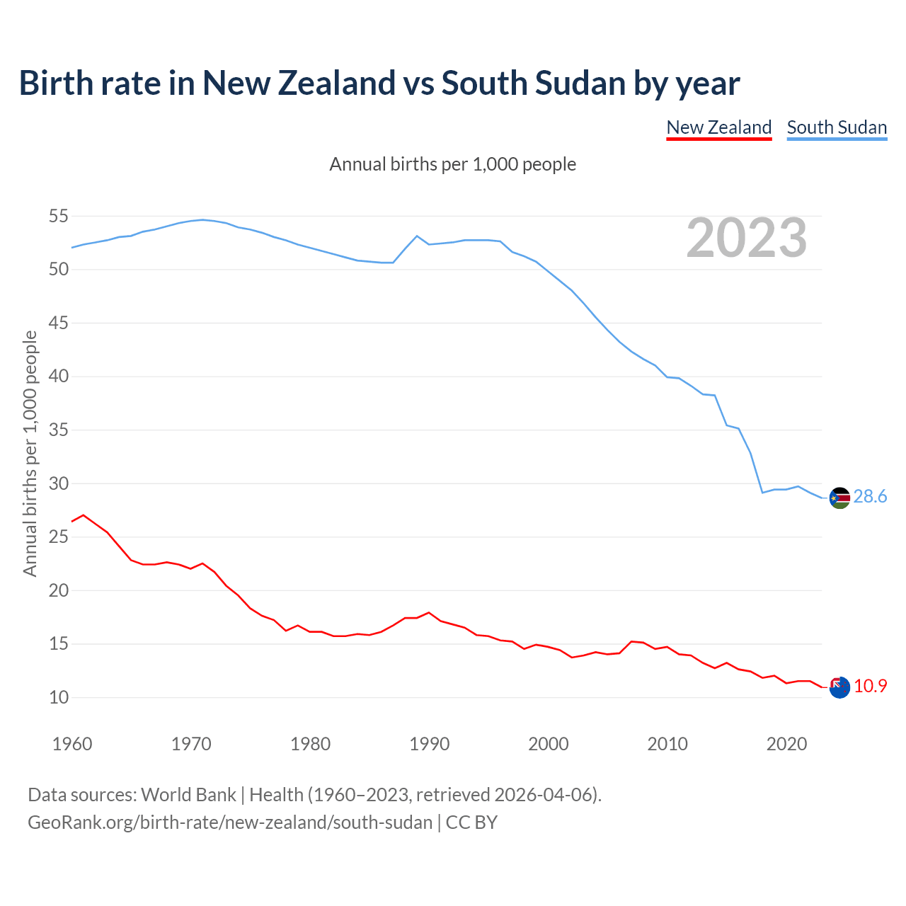 GeoRank.org/birth-rate/new-zealand/south-sudan | CC BY