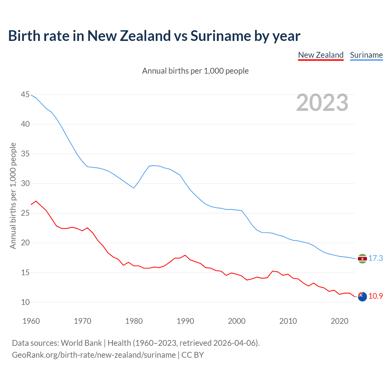 GeoRank.org/birth-rate/new-zealand/suriname | CC BY