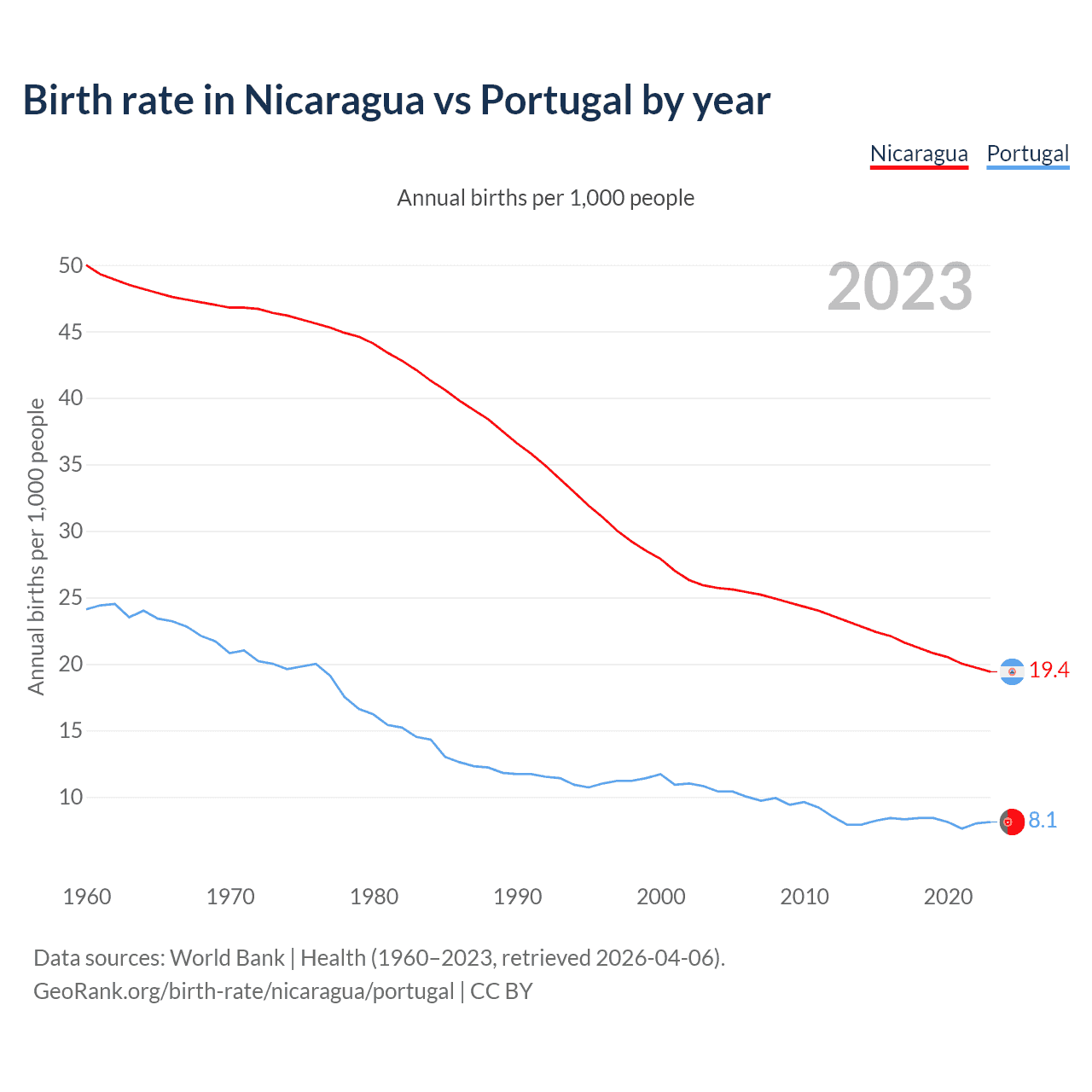 GeoRank.org/birth-rate/nicaragua/portugal | CC BY