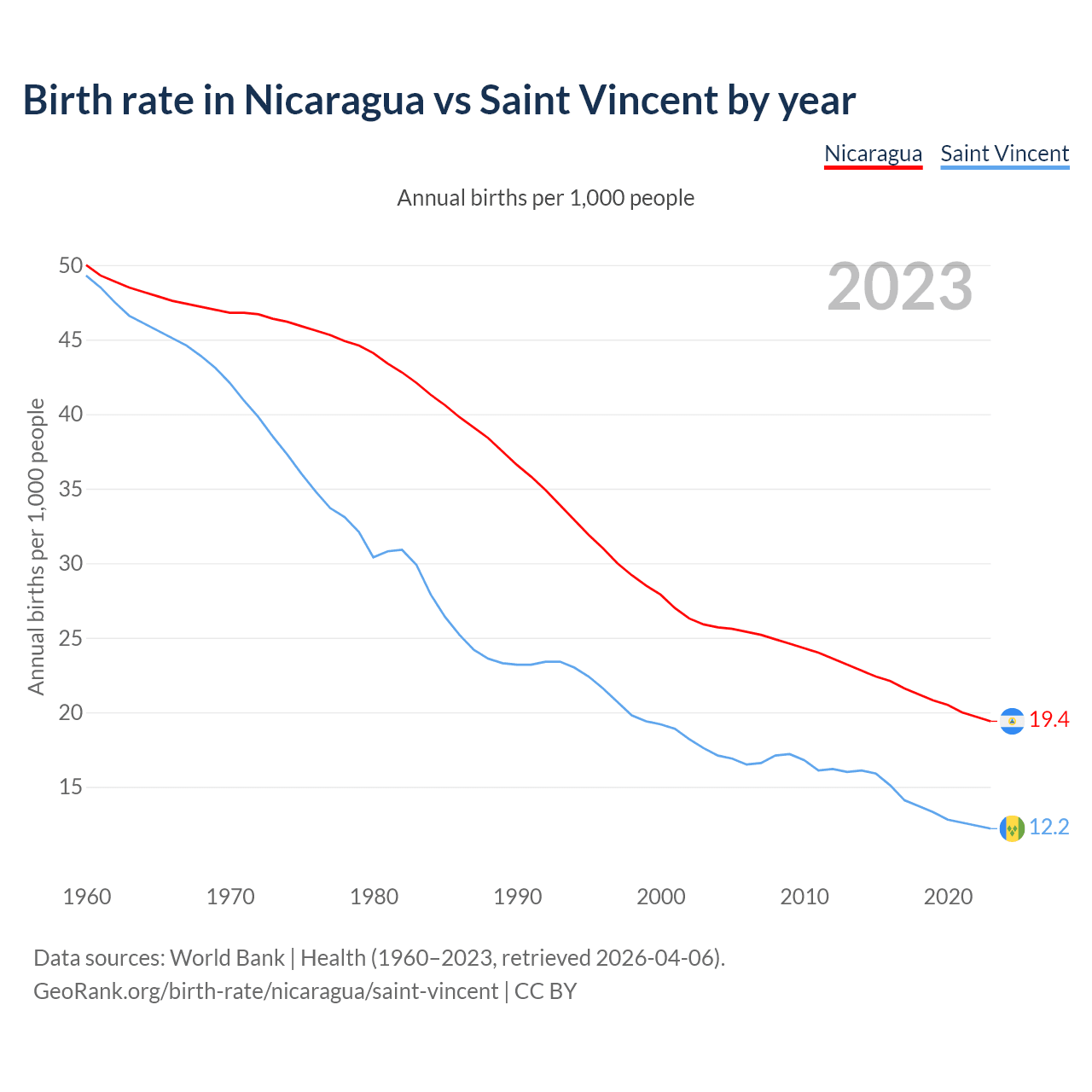GeoRank.org/birth-rate/nicaragua/saint-vincent | CC BY
