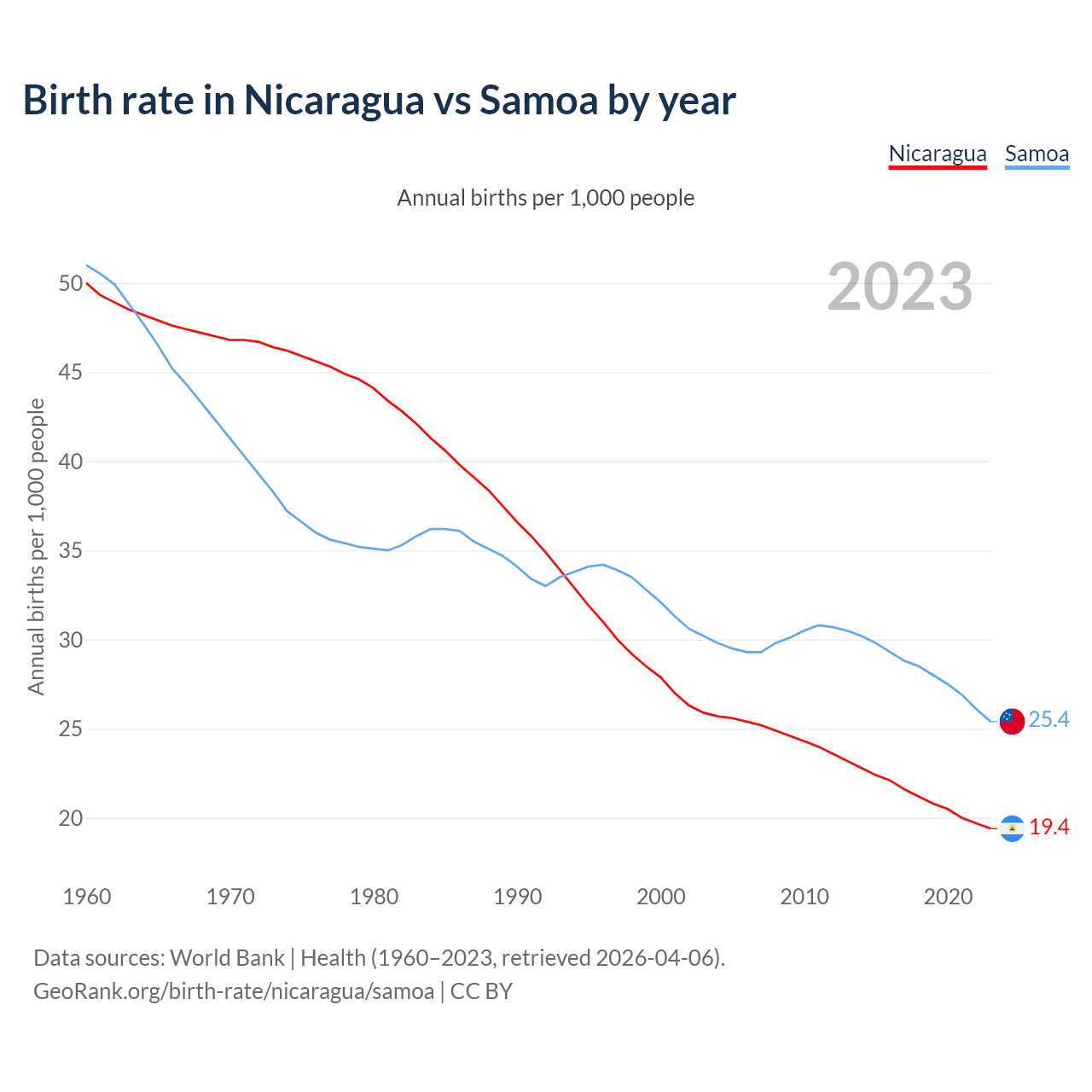 GeoRank.org/birth-rate/nicaragua/samoa | CC BY