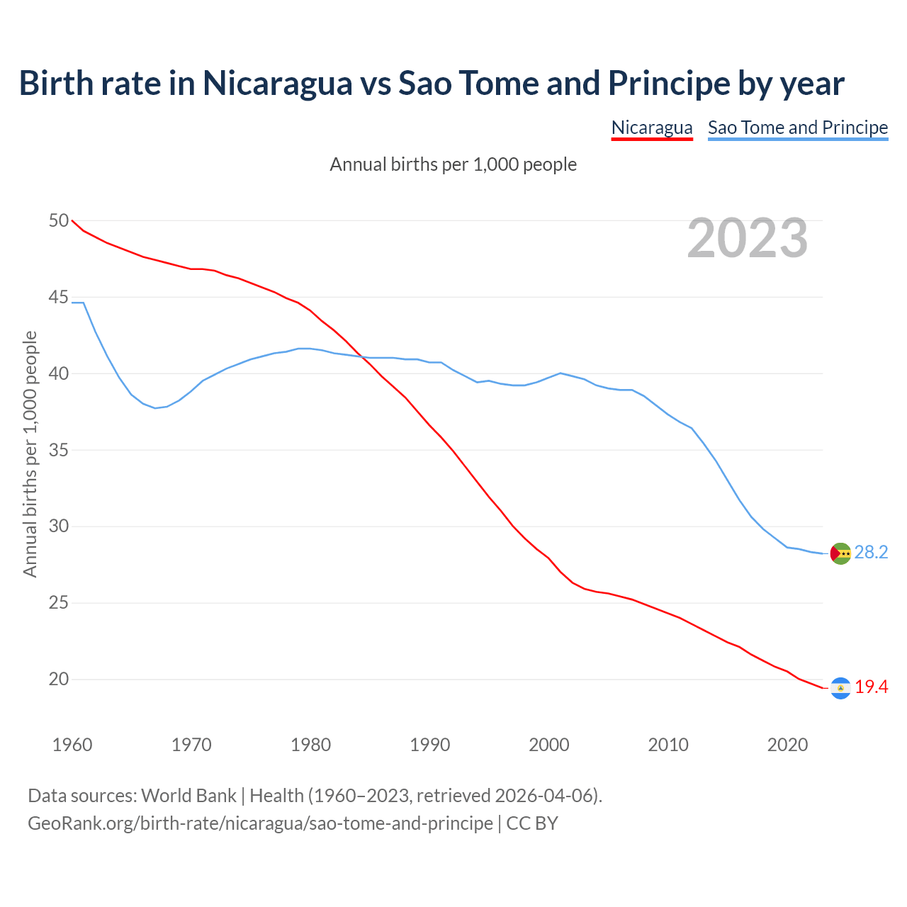 GeoRank.org/birth-rate/nicaragua/sao-tome-and-principe | CC BY