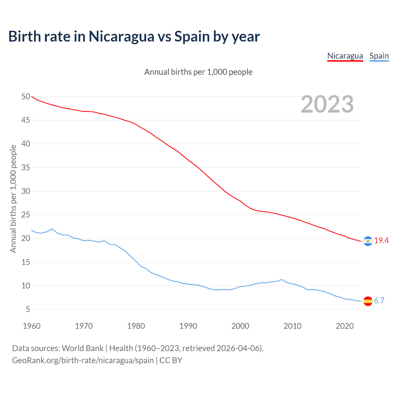 GeoRank.org/birth-rate/nicaragua/spain | CC BY