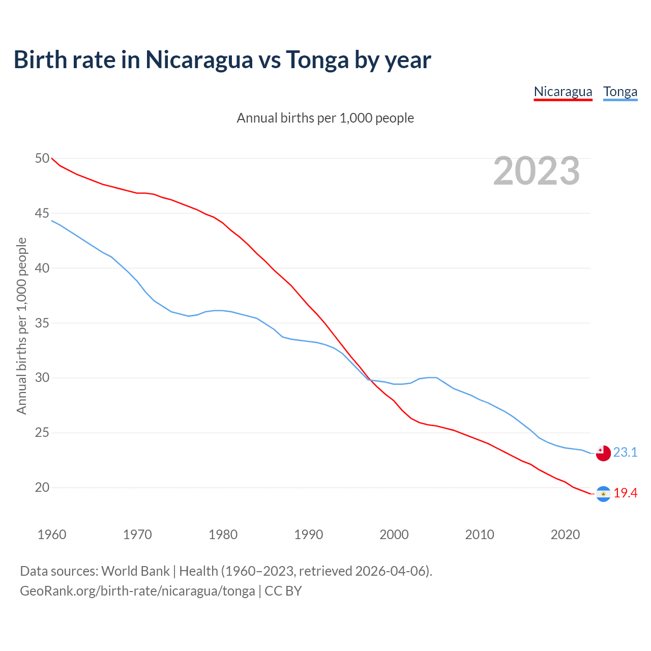 GeoRank.org/birth-rate/nicaragua/tonga | CC BY