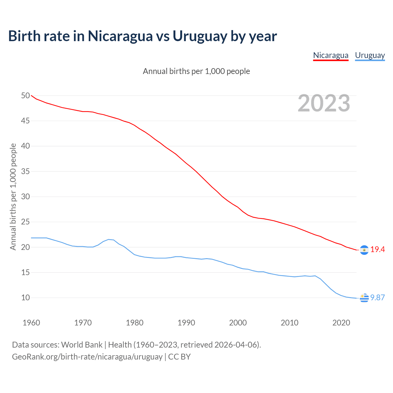 GeoRank.org/birth-rate/nicaragua/uruguay | CC BY