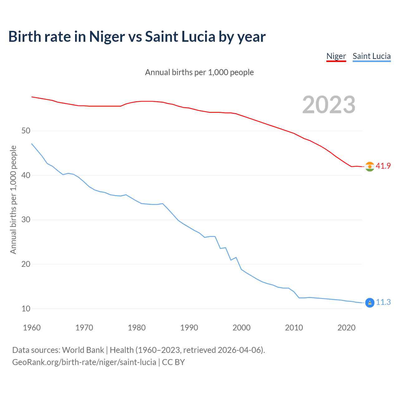 GeoRank.org/birth-rate/niger/saint-lucia | CC BY