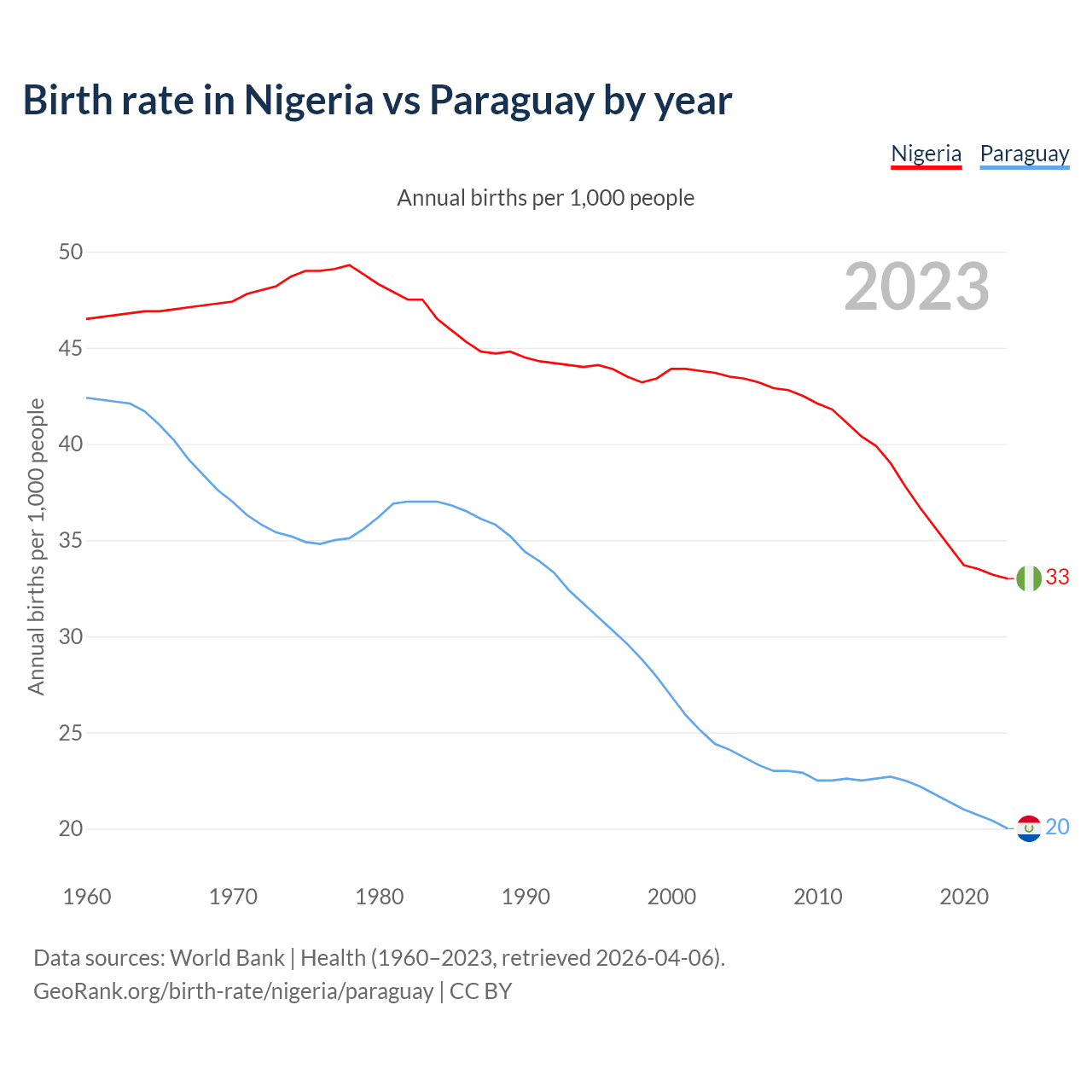 GeoRank.org/birth-rate/nigeria/paraguay | CC BY