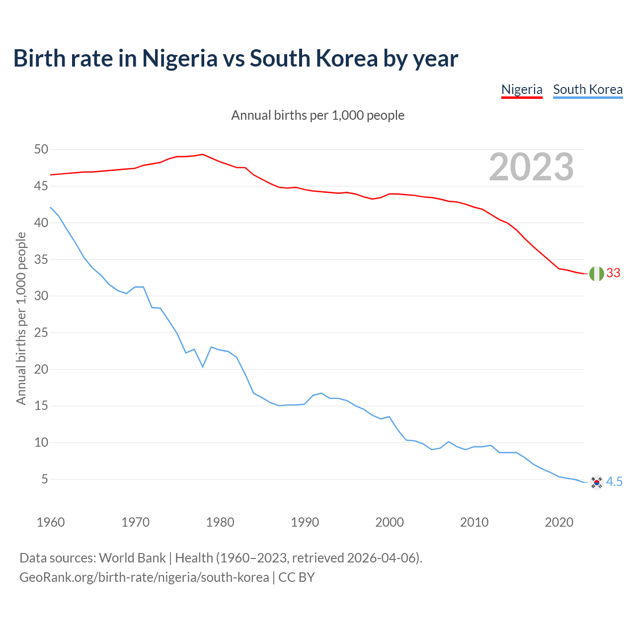 GeoRank.org/birth-rate/nigeria/south-korea | CC BY