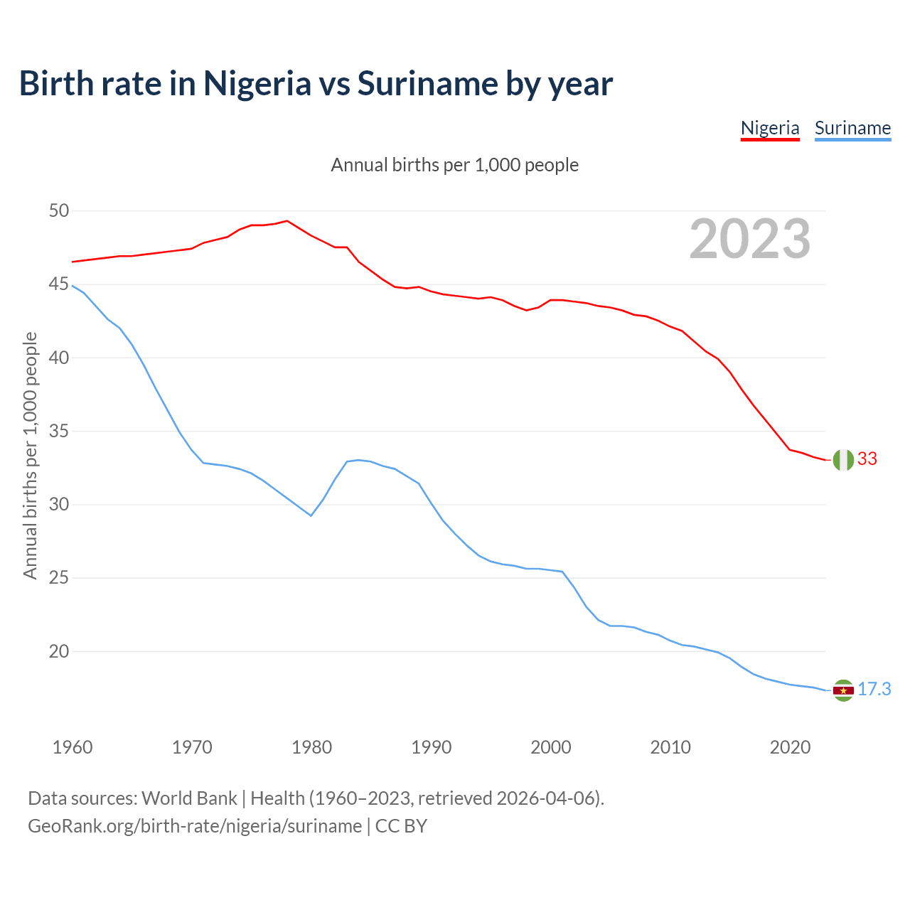 GeoRank.org/birth-rate/nigeria/suriname | CC BY