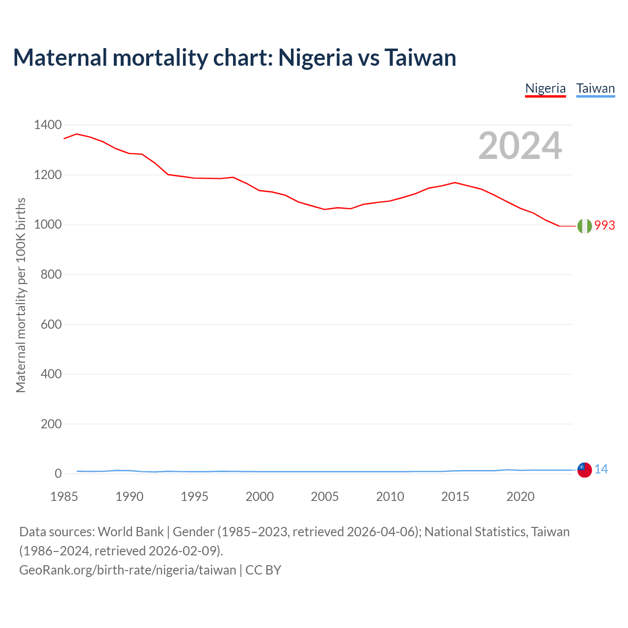 Maternal mortality chart: Nigeria vs Taiwan