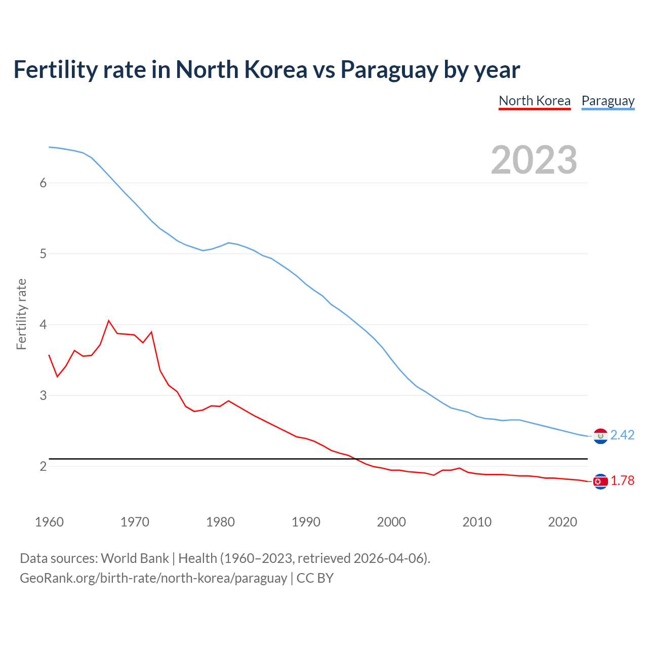GeoRank.org/birth-rate/north-korea/paraguay | CC BY