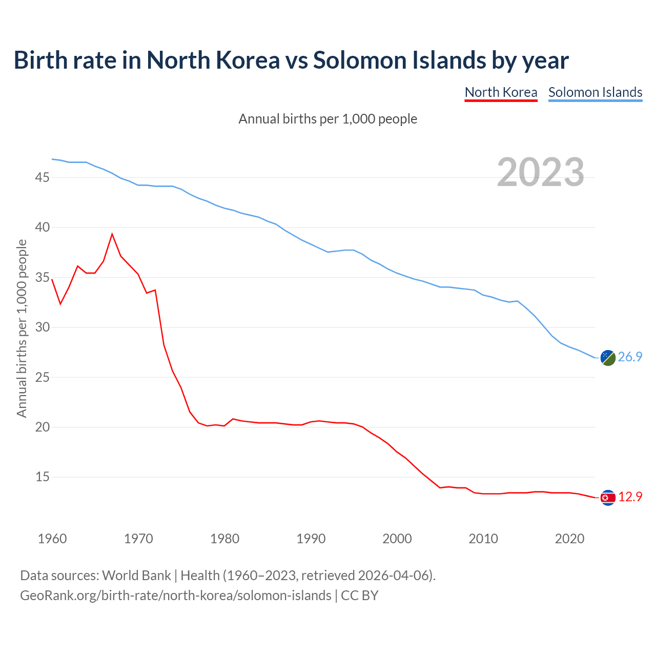 GeoRank.org/birth-rate/north-korea/solomon-islands | CC BY