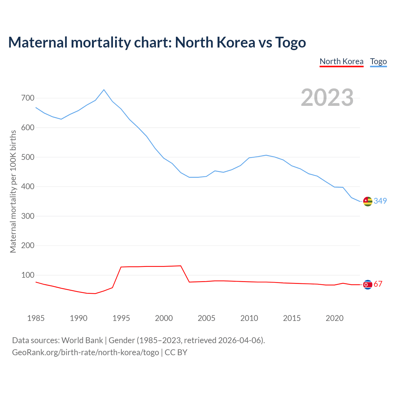 - North Korea is ranked 109/196 by birth rate compared to 26/196 for Togo.