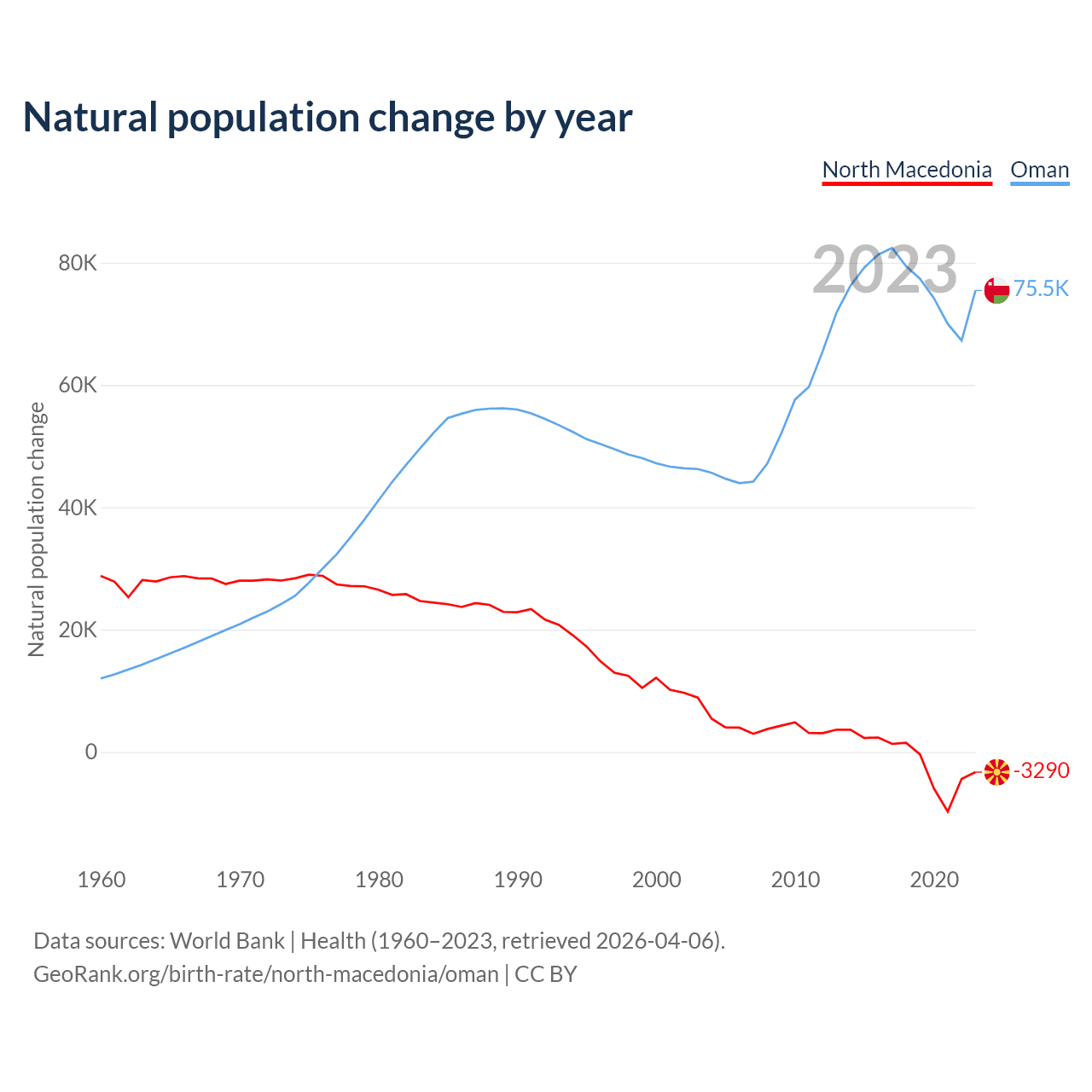 - North Macedonia is ranked 158/196 by birth rate compared to 89/196 for Oman.