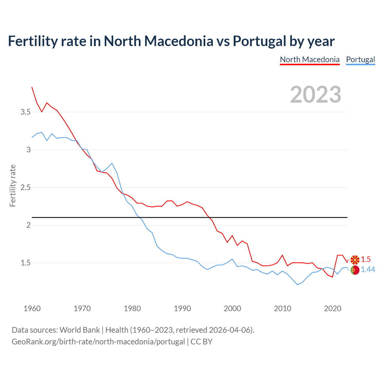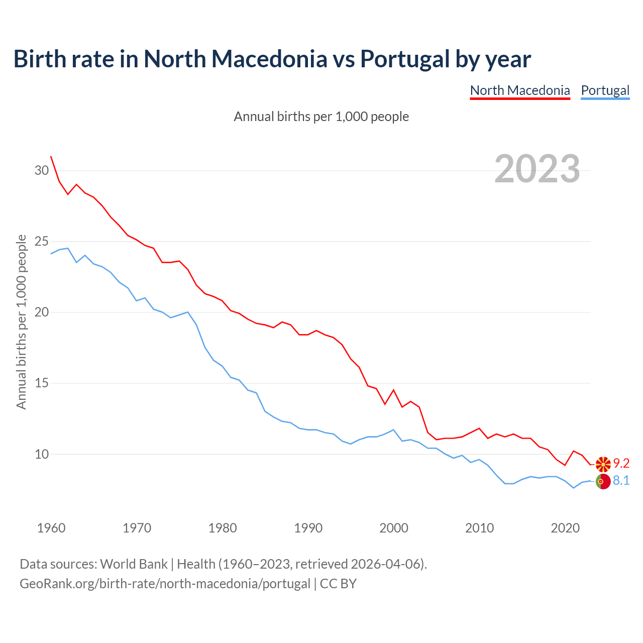 GeoRank.org/birth-rate/north-macedonia/portugal | CC BY
