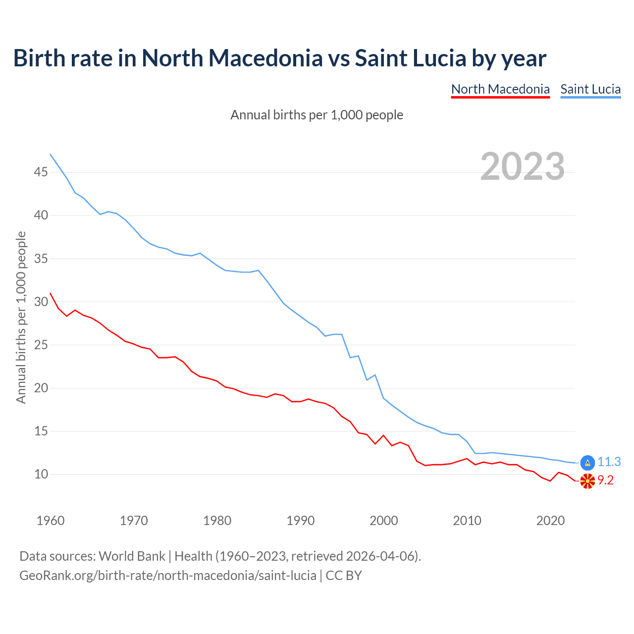GeoRank.org/birth-rate/north-macedonia/saint-lucia | CC BY