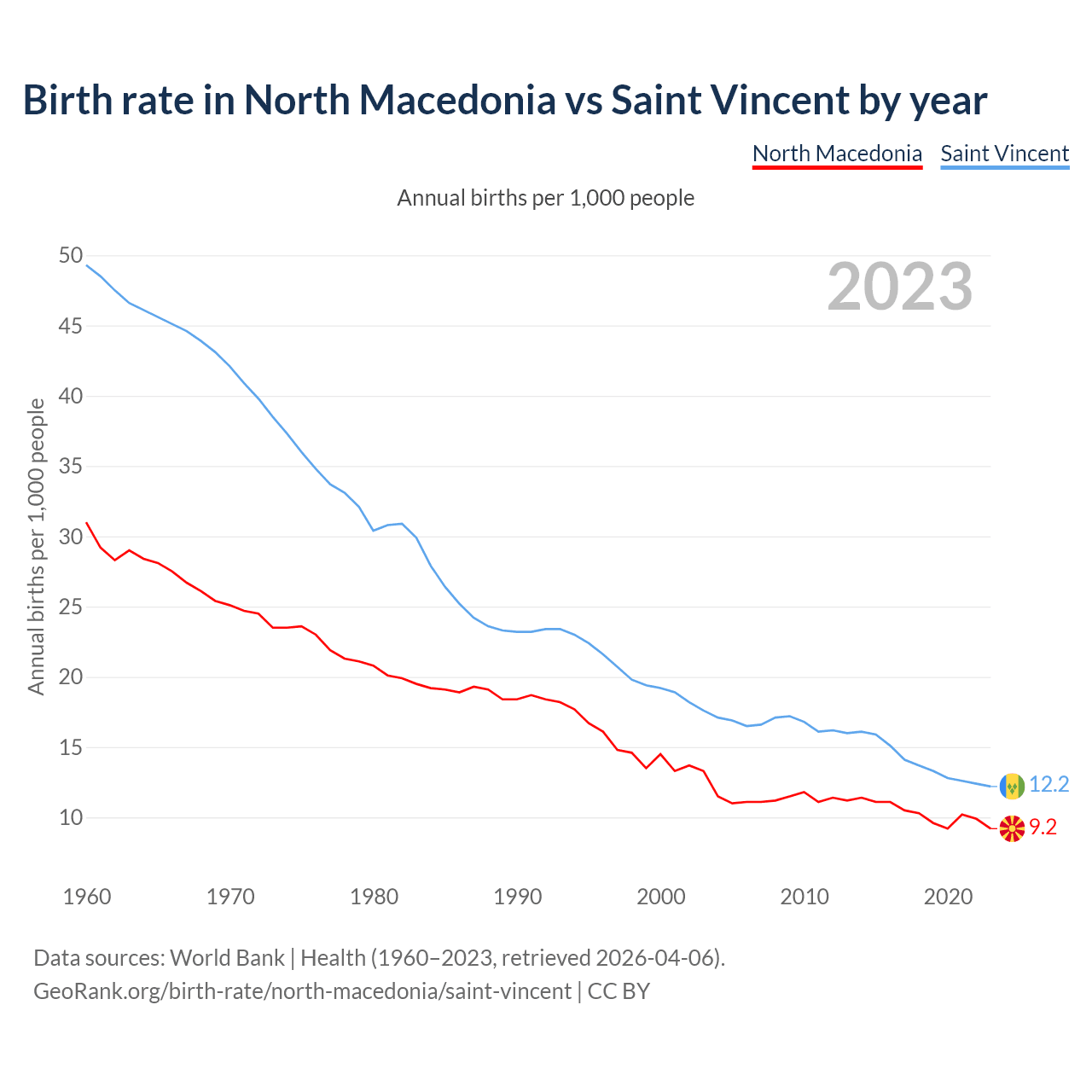 GeoRank.org/birth-rate/north-macedonia/saint-vincent | CC BY