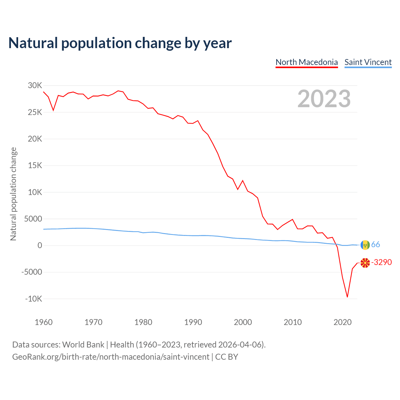 - North Macedonia is ranked 158/196 by birth rate compared to 116/196 for Saint Vincent.