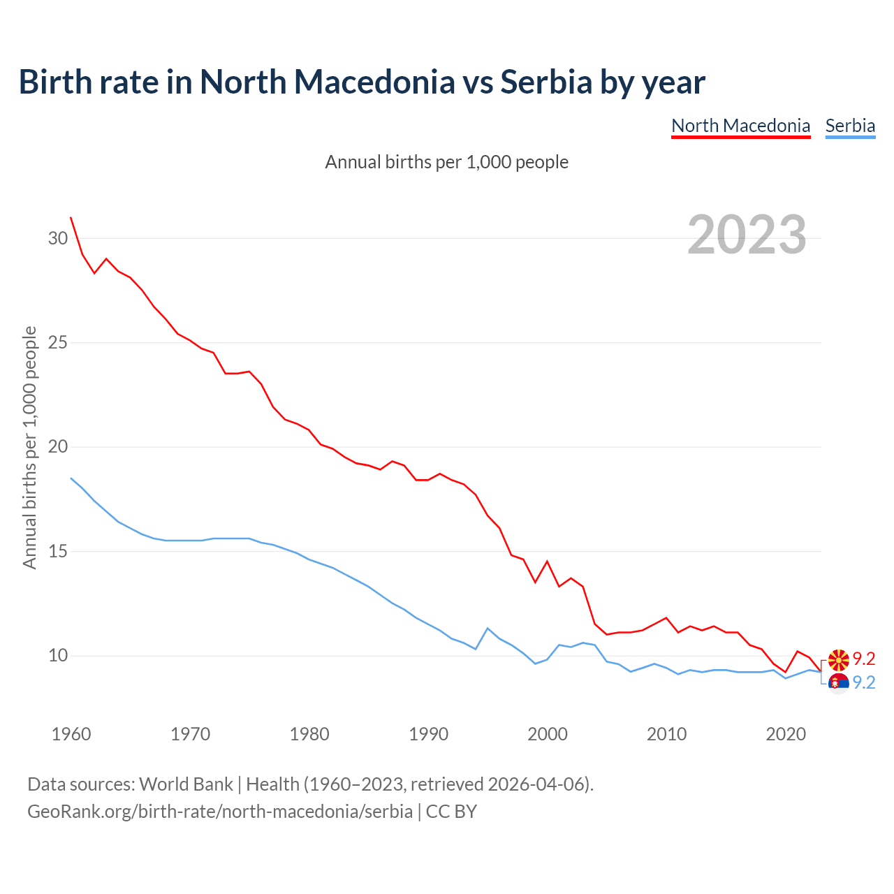 GeoRank.org/birth-rate/north-macedonia/serbia | CC BY