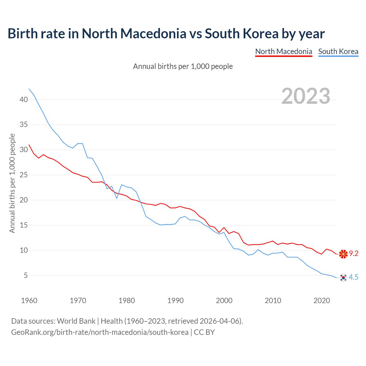 GeoRank.org/birth-rate/north-macedonia/south-korea | CC BY