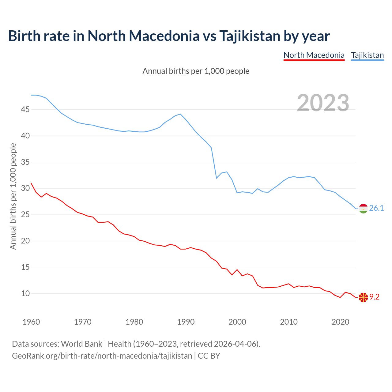 GeoRank.org/birth-rate/north-macedonia/tajikistan | CC BY