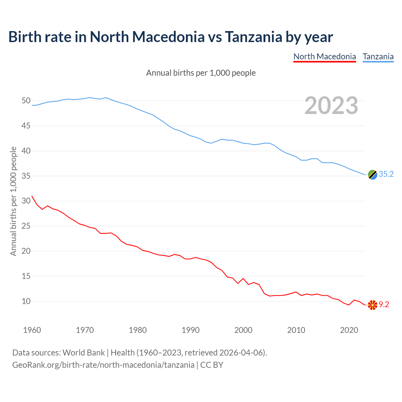 GeoRank.org/birth-rate/north-macedonia/tanzania | CC BY