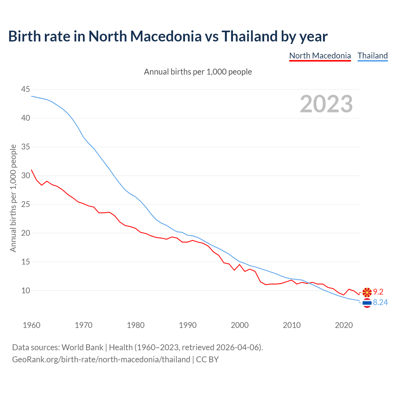 GeoRank.org/birth-rate/north-macedonia/thailand | CC BY
