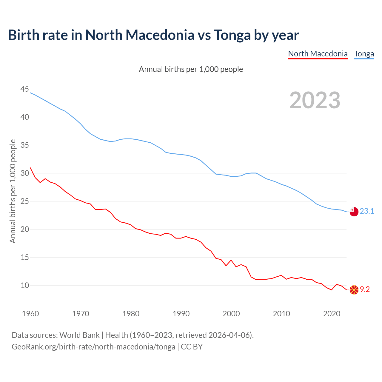GeoRank.org/birth-rate/north-macedonia/tonga | CC BY