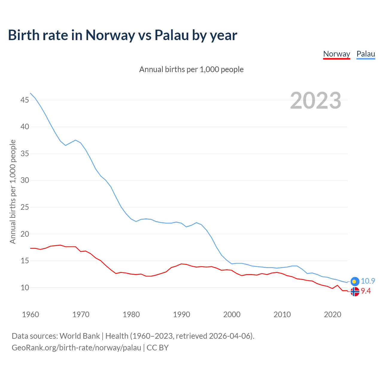 GeoRank.org/birth-rate/norway/palau | CC BY