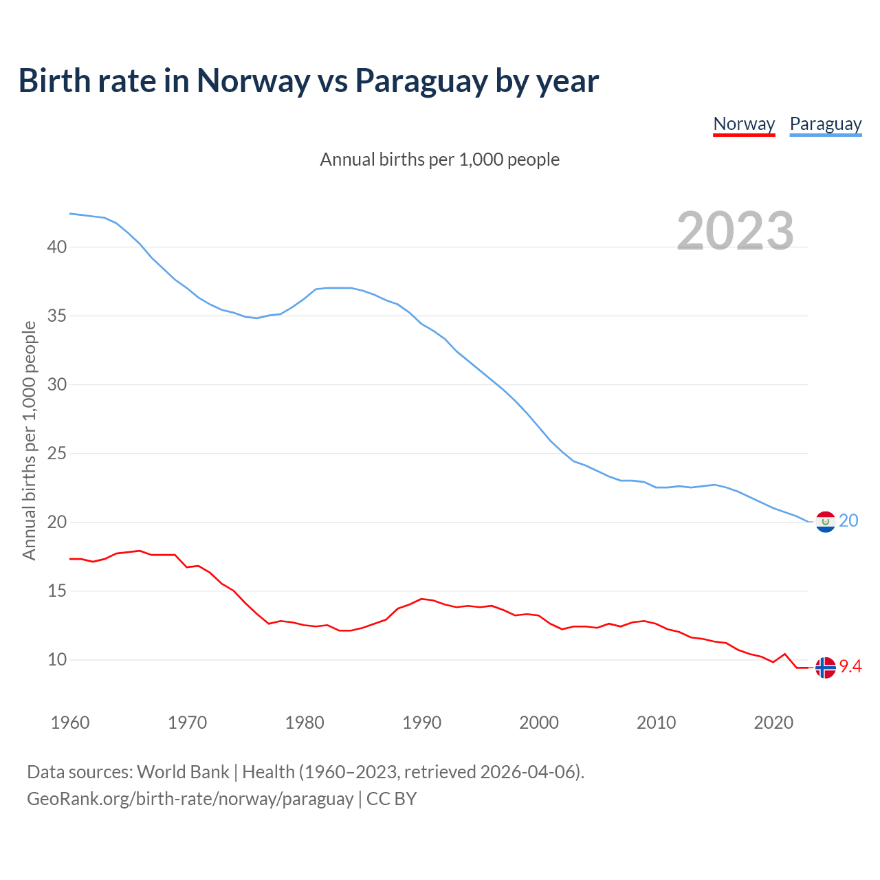 GeoRank.org/birth-rate/norway/paraguay | CC BY