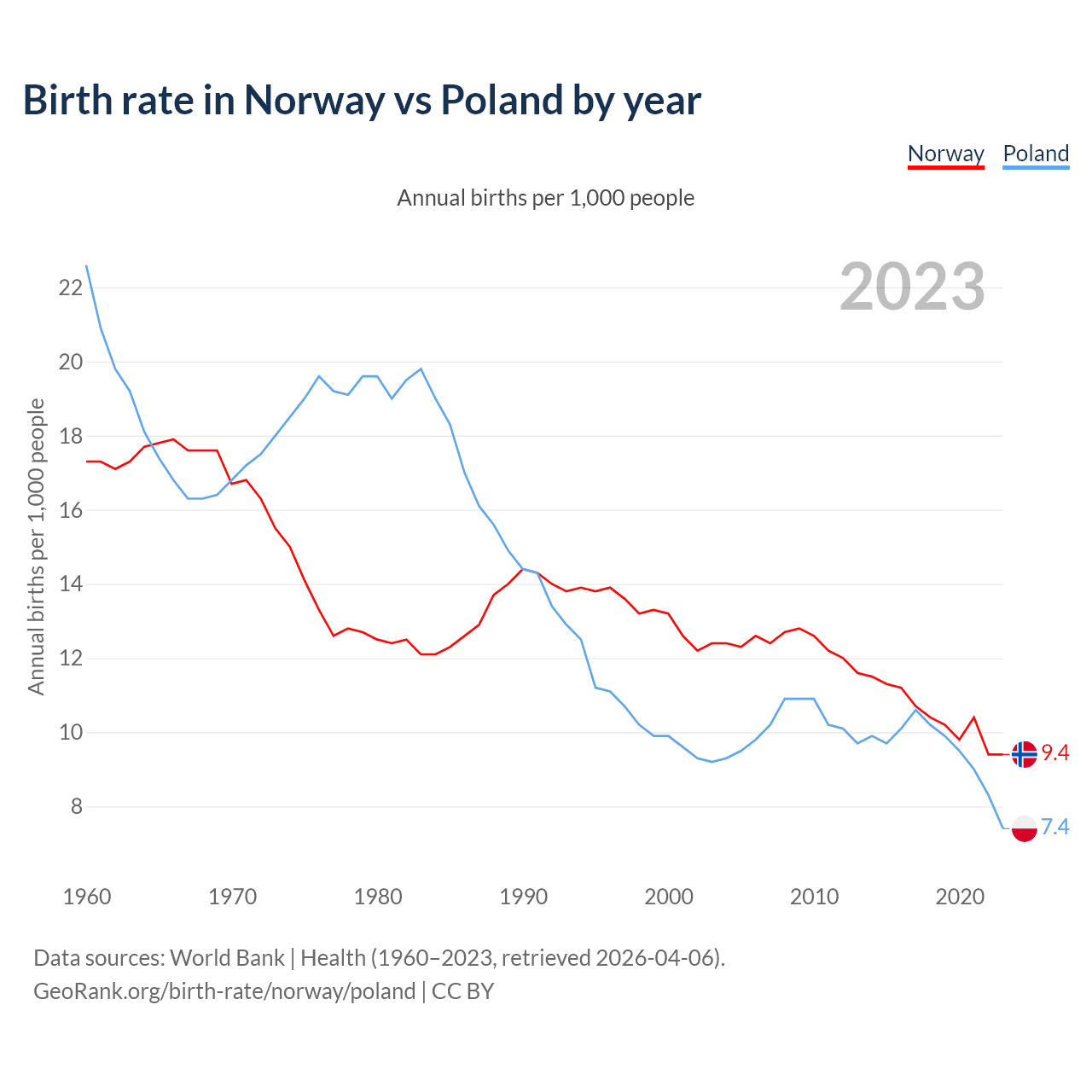 GeoRank.org/birth-rate/norway/poland | CC BY